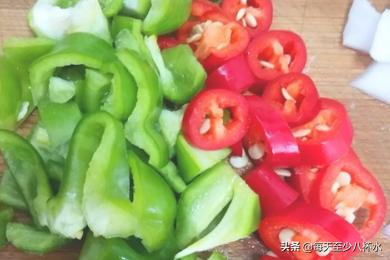 2、青辣椒清洗干净,切成小片;红色小米椒清洗干净切成小圈。