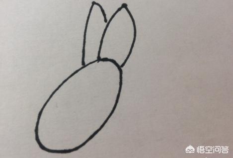 2、然后再画兔子耳朵,兔子耳朵都是上面尖尖的,所以可以适当画尖一点,如下图。