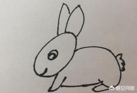 6、在兔子身体的最右侧,画出兔子短小的,毛茸茸的尾巴。兔子的简笔画就完成了。
