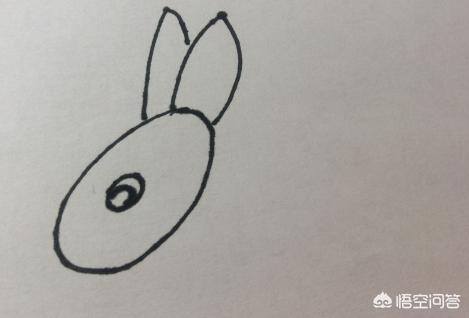 3、在兔子头部的中间位置,画出兔子椭圆形的眼睛。在眼睛内部画出眼珠的形状。