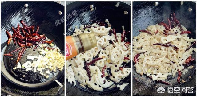 3.整个炝制过程都不要加水,让藕在被炝炒至熟的同时释放水份并吸附调味料。